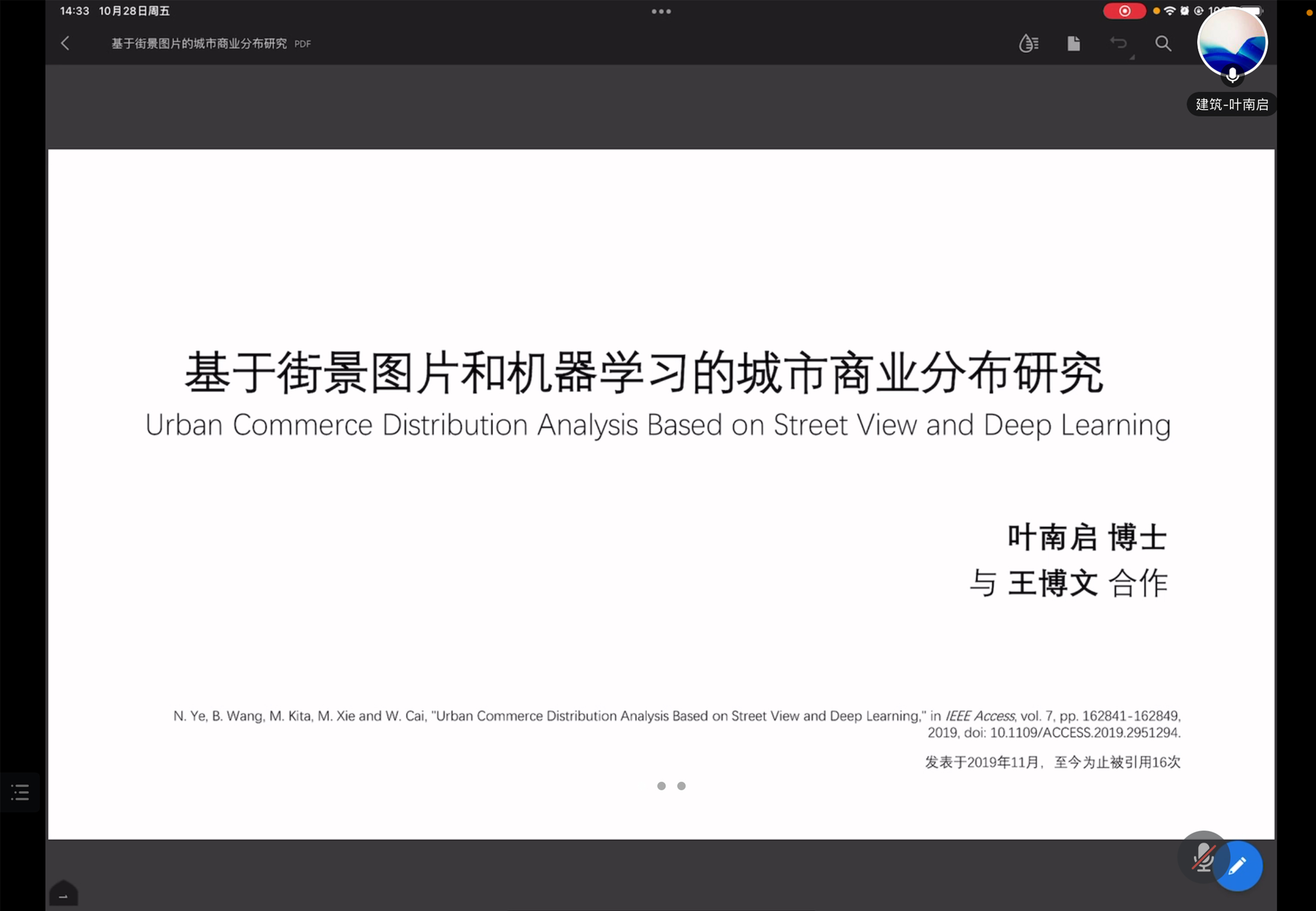 建筑学专业叶南启老师以自身研究课题《基于街景图片和机器学习的城市商业分布研究》为切入点,介绍了街景图片和机器学习算法,从而找出街景中的商铺招牌。对于街景图片,从Open Street Map上下载路网,使用百度地图下载实景照片,并在Faster RCNN结构图中进行训练和数据处理,结合合肥市商业分布为例详细介绍了研究过程。