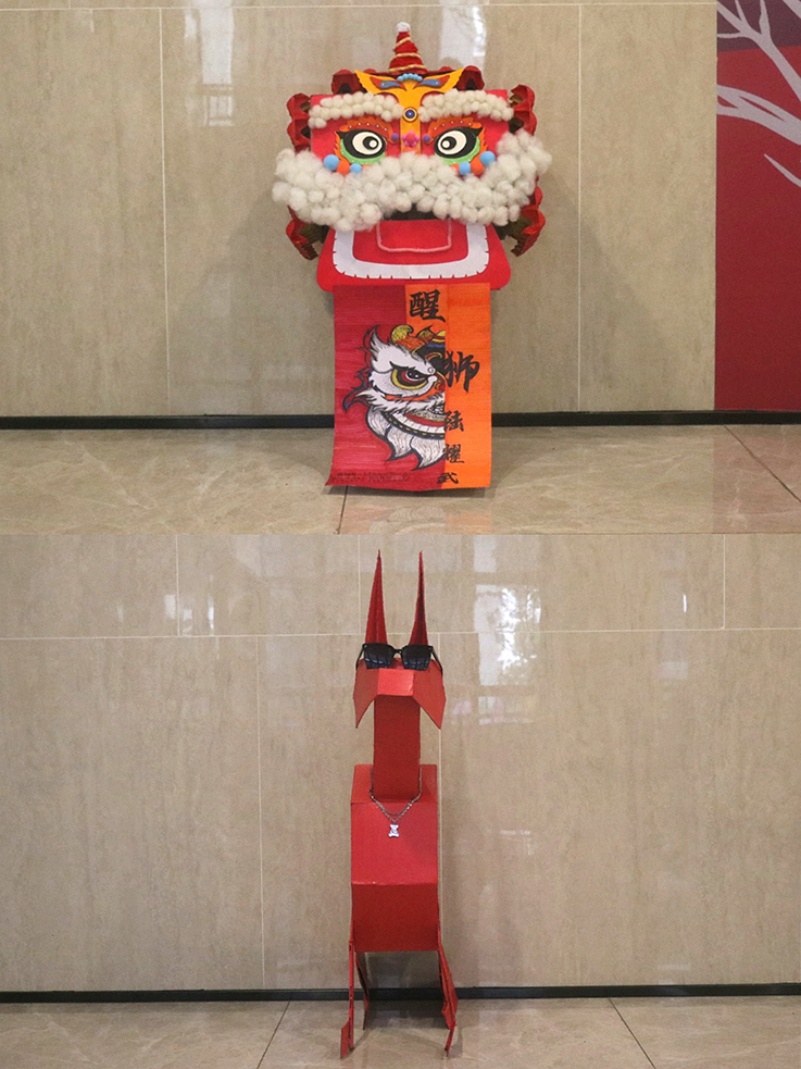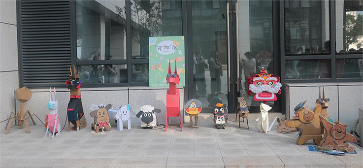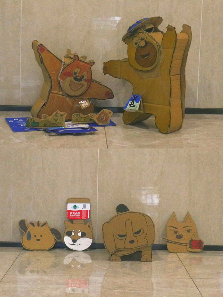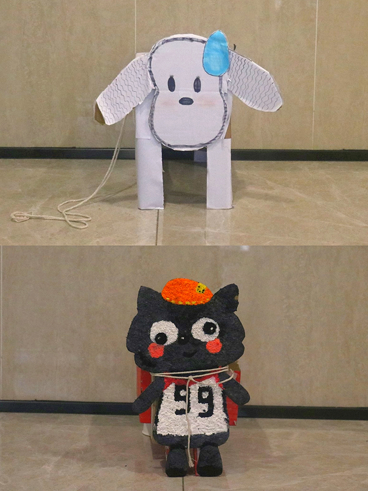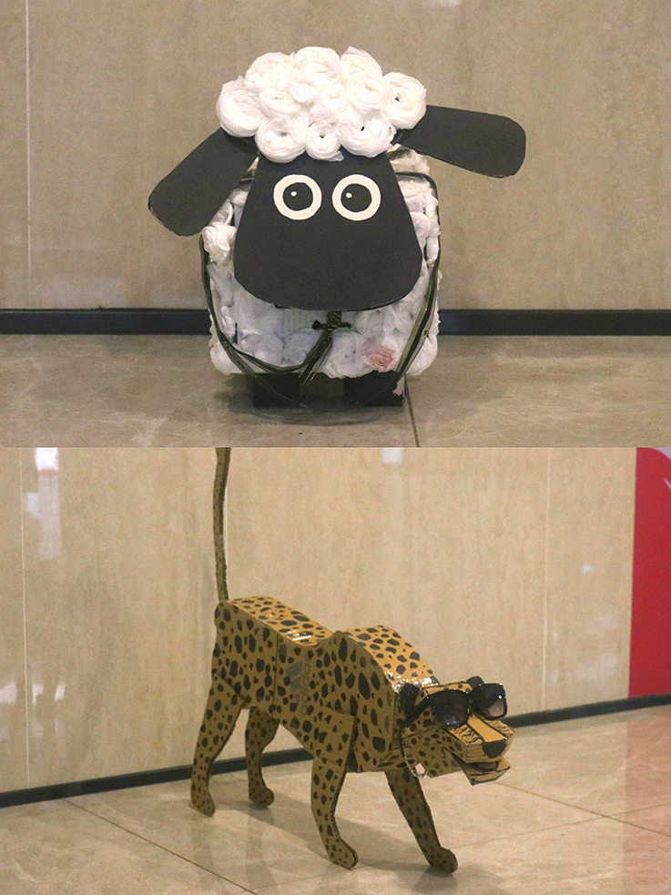 和植下一棵树相比,更简单的是节约每一张纸。同学们利用废旧纸板、废旧盒子等物品,通过剪裁、粘合、装饰多重工序,制作出各种栩栩如生的“纸板宠物”。同学们还为每只“宠物”量身定制了海报,既美观又充分展现出每只“宠物”独一无二的创意。在同学们制作完成后,大家将“宠物们”聚在一起举行了一场“宠物秀”,展现出大学生积极向上的精神状态与蓬勃朝气。