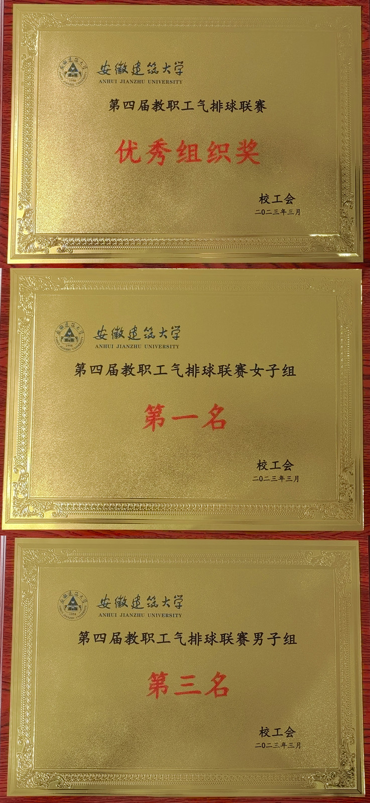 建规学院气排球队荣获女子第一名、男子第三名佳绩,学院分工会荣获优秀组织奖。