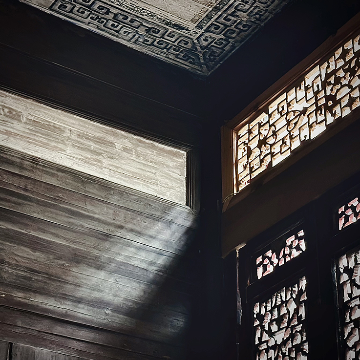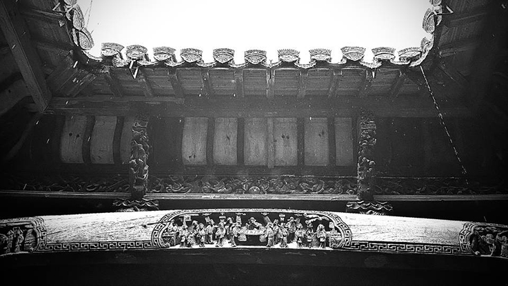 徽派建筑的木雕格外精美,其在梁柱、窗棂等部位进行布置,以各种精美的人物、神兽、山水等木雕营造出独特的文化氛围。