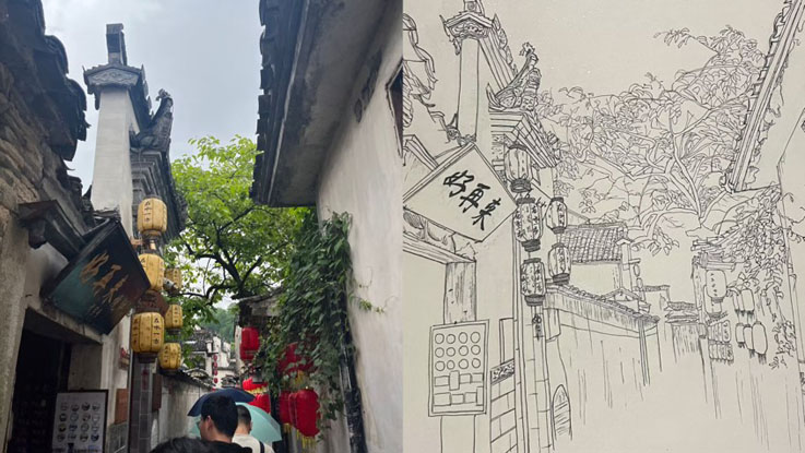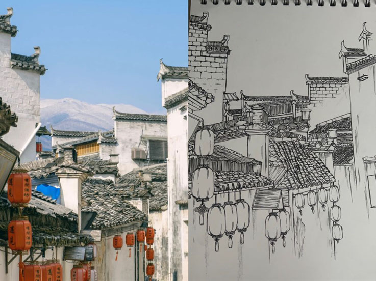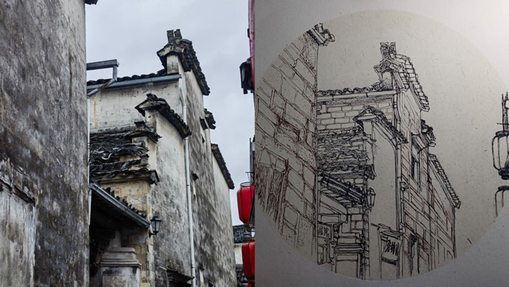 本网讯 4月22日至28日,建筑与规划学院2022级学生在艺术学院老师指导下,在皖南,用相机和笔将西递、宏村的美记录下来,将美好留于心间。