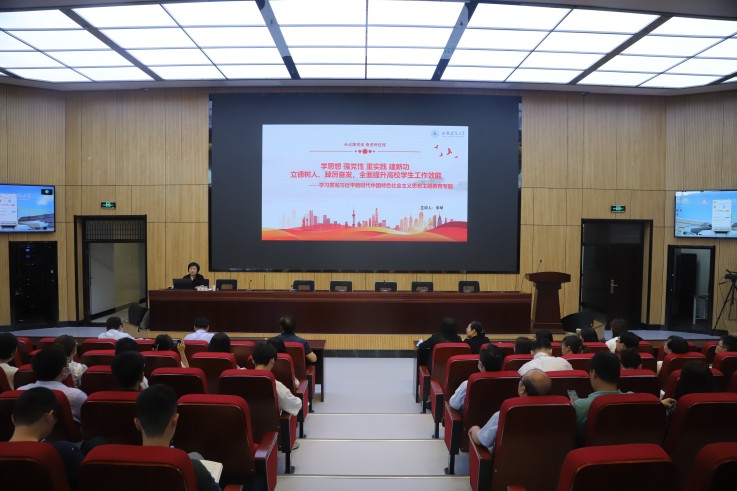 本网讯  为深入推进学习贯彻习近平新时代中国特色社会主义思想主题教育走深走实,按照学校党委主题教育工作安排,525午,校党委常委、副校长李早实训综合楼二楼报告厅以《立德树人、踔厉奋发,全面提升高校学生工作效能》为题,讲授主题教育专题党课。校宣传部、统战部、研工部、学生处、工会、团委、建规学院、艺术学院相关负责人,教师党员代表,学生党员代表参会。