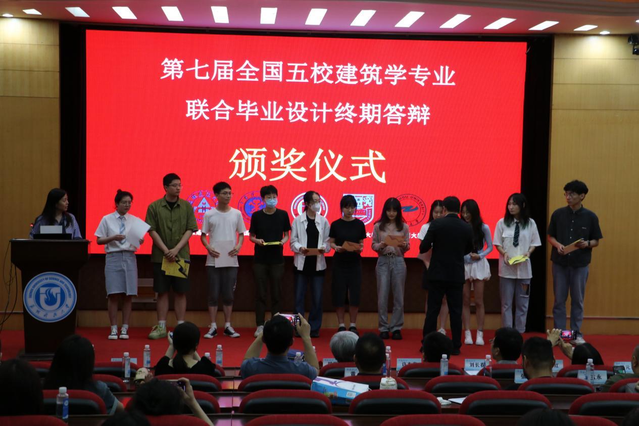 打分结束在经过老师专家们的集体商议后,点评出十个小组作为本次的优秀毕业设计,商讨完毕后闭幕式正式开始,获奖同学和颁奖嘉宾依次登场。由郑州大学黄晶教授、南工大蔡志昶副院长、中矿大林祖锐教授、苏科大邱德华教授为获奖学生颁发了优秀作品奖。给同学们留下了宝贵的回忆。