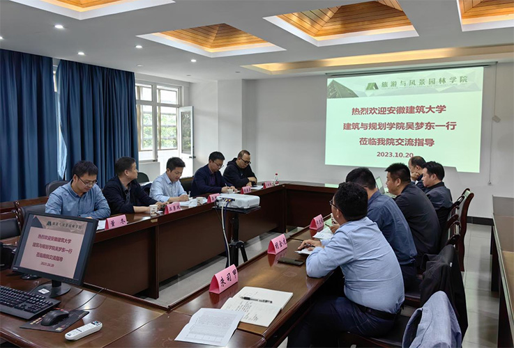 交流会上,王璐介绍了旅游与风景园林学院党建工作、教师结构、学工队伍、人才培养、招生生源、实习就业等基本情况,郑文俊、贺剑武分别就国家基金申报、人才培养和本科教学、专业竞赛等做了详细介绍。