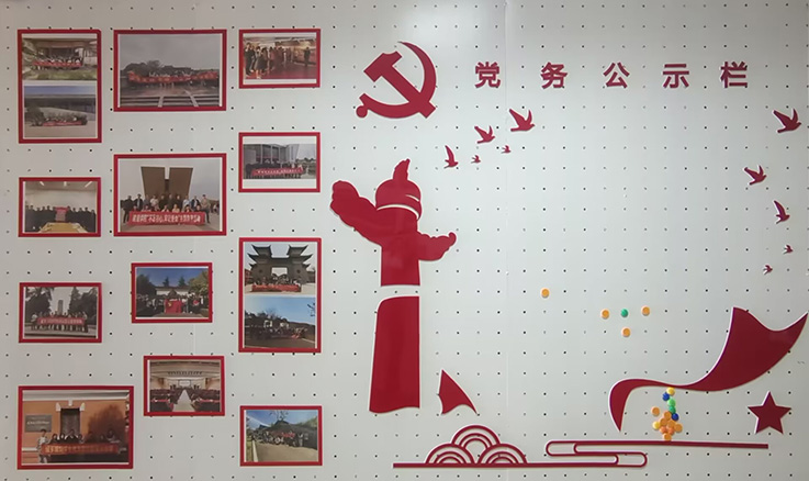 党建文化墙是提升党建工作活力的有效举措。党建文化墙装点了办公区文化环境,更是起到宣传党建知识、丰富党员精神生活的作用,营造出“处处是课堂、时时受教育”的浓厚党建文化氛围,提醒每位党员时刻不忘初心、牢记使命,力争在工作、生活、学习中创先争优。