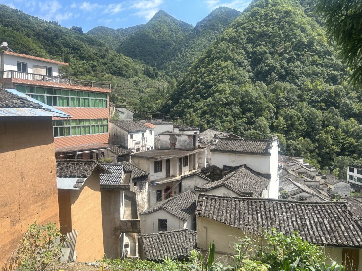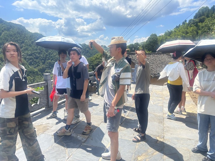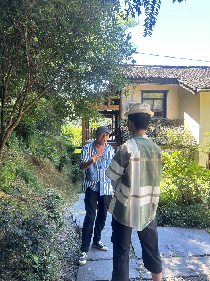 在闪里镇桃源村开展一系列调研活动,调研团队与当地村民进行沟通交流,了解村落建筑现状、历史文化以及风土人情。队伍从村口接待中心南仕堂出发,沿着主游览路线参观各祠堂,同时一览沿途民居风貌。在村支书的带领下,我们还参观了仃屋、南山客栈等老房改造项目,这些建筑在更新后被植入新的业态,打造咖啡馆、书院、茶楼和非遗文创等特色旅游打卡点,这与其他传统古村落所打造的旅游体验甚为不同。参观其中,我们能感受到设计师的妙思。以仃屋为例,这是一座由农宅改造而成的乡村咖啡馆。老宅的外部面貌被完整保留了下来,内部则植入焕然一新的木结构,采光和通风的问题被完美解决。这种新旧之间的反差给调研团队独特的体验,同时享受到村落的闲适。
