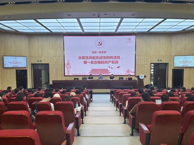 院党委书记唐劲松以《永葆党员的先进性和纯洁性,做一名合格的共产党员》为题,给毕业生党员上“最后一堂党课”,勉励毕业生党员在未来的学习工作生活中,牢固树立正确的理想信念,恪守党的根本宗旨,成为有利于党、有利于人民的社会主义合格建设者和可靠接班人。