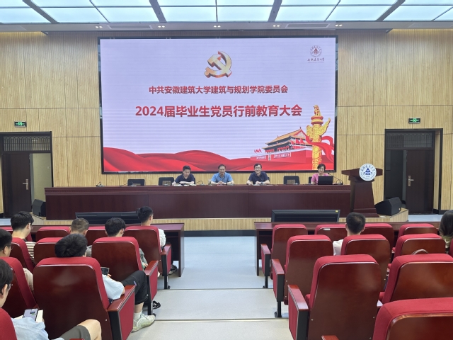 本网讯   为进一步加强毕业生党员教育和管理,坚定毕业生党员理想信念,强化毕业生党员身份意识、责任担当,激励毕业生党员发挥好先锋模范作用,6月17日下午,建规学院党委在徽韵楼二楼报告厅召开2024届毕业生党员行前教育大会,学院班子成员、组织员、辅导员及2024届全体毕业生党员参加。会议由院党委书记唐劲松主持。