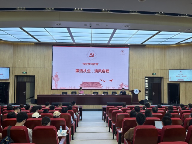 院党委副书记、纪委书记吴梦东以《廉洁从业清风启程》为题,从党的规矩、党的纪律、违反廉洁纪律的处分三个方面给毕业生党员进行党纪学习和廉洁教育,嘱咐毕业生党员要带头学纪、知纪、明纪、守纪。