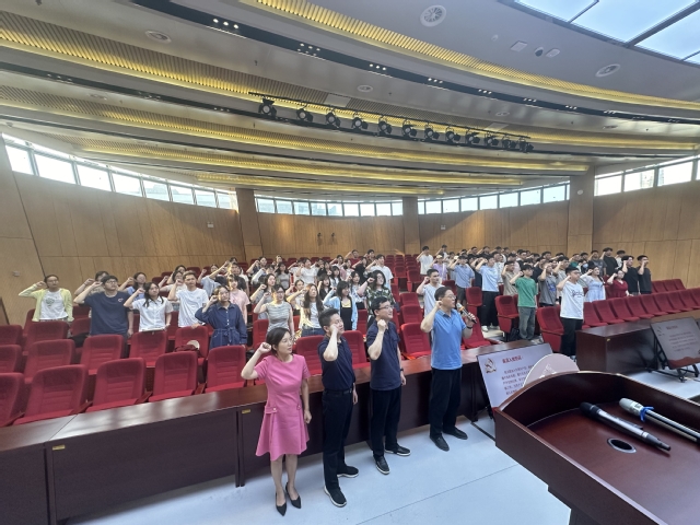 最后,在院党委书记唐劲松的带领下,全体党员重温入党誓词。铿锵有力的宣誓声展现了党员同志们对党的坚定信仰和无限忠诚,更加坚定了他们的理想信念,也提醒着党员同志们要牢记党员身份,时刻以共产党员的标准严格要求自己,自觉听从党和人民的召唤,用实际行动践行党员承诺。(作者:陈宜瑜;审稿:唐劲松)