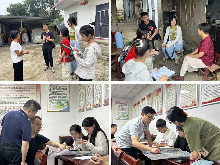 团队分为产业发展调研、村干村民访谈、实地踏勘调研绘图等小组,实地走访寿县大泉村,为大泉村庭院区域划分、绿植种植提供建议,为其打造庭院内的亮丽风景线。团队成员调研走访乡村群众、聆听乡村发展故事,用文字记录群众对乡村发展的真实感受,并通过对大泉村资料的分析整理,在标志性景点建设、网红打卡点营造等方面,完成部分设计手稿,撰写调研报告,指出大泉村发展的机遇和挑战,探索大泉村未来发展方向,提出大泉村乡村振兴有效途径。