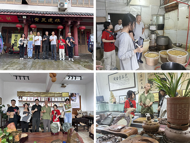团队挖掘大泉村良好的区位优势、交通优势、产业优势、文化优势,访谈国家级非遗项目八公山豆腐、省级非遗紫金砚制作技艺传承人,体验豆腐制作之法,感受传承千年的豆腐文化,对豆腐小镇进行旅游业态提升、文创产品设计等提出针对性建议。围绕乡村文旅发展,调研团队在豆腐发源地IP记忆点挖掘上深入探讨,为地方产业振兴提供参考。