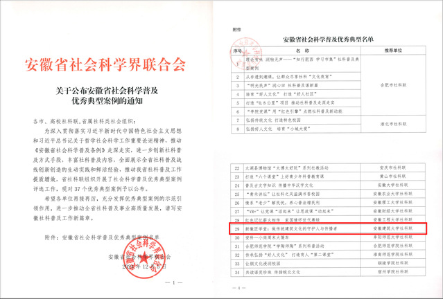 【学院风采】我校案例成功入选安徽省社会科学普及优秀典型案例