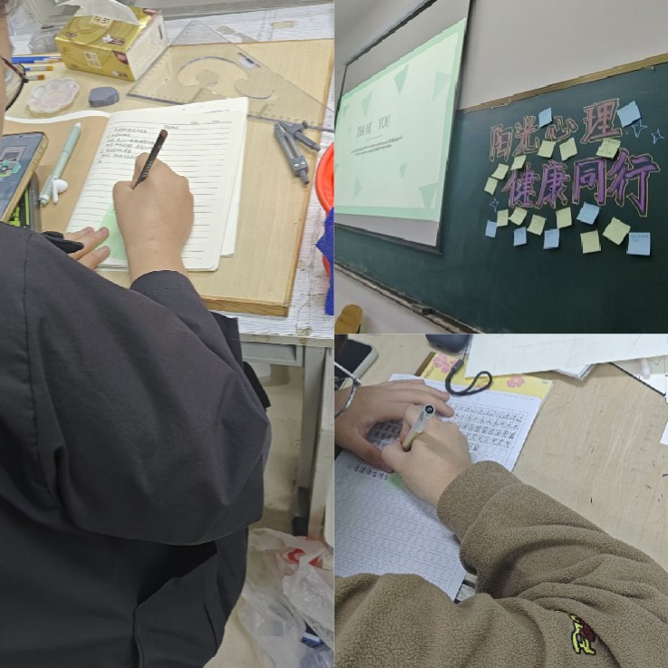 同学们回顾了入学的点点滴滴,在分发的小卡片写下自己的烦恼与希望,约定要互相帮助、共同成长,一起奔向美好的未来。同学们回朔过程中,卸下周身疲劳和心中的压力与苦闷,全身心地投入到记录心情中去,此环节为同学们提供了一个非言语的表达渠道,让内心深处被压抑的情感得以释放。