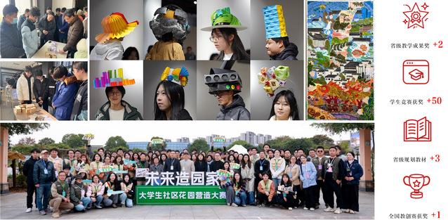 产教融合育新人,喜结硕果。学院携手合肥市资规局、合肥市规划院等,共建“国土空间规划实践教学共同体”,推动政产学研深度融合。打造“新人引航计划”与“校友下午茶”学术品牌地标,邀请行业精英与设计大师来校交流,累计举办10余场高质量讲座。联合行业企业举办“未来造园家”社区花园设计大赛,吸引来自东南大学、南京农业大学等全国12所顶尖高校参与,产教融合成果丰硕。