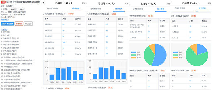 采用填写调查问卷的方式,结合每位同学的生活习惯、兴趣爱好、生肖生日,分析大家的性格特征以达到优势互补、相得益彰的良好影响,让新生在科学基础上又具有人性化的模式下开启朝气蓬勃的大学生活。