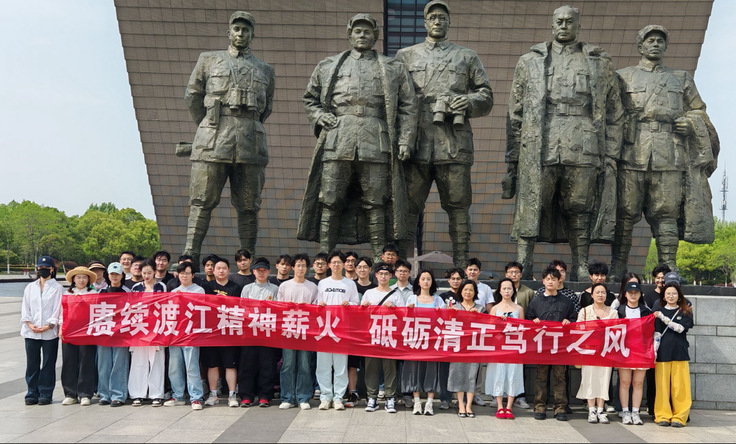 本网讯 为深入学习贯彻党的二十大精神,深化党史学习教育,弘扬红色文化,增强党员队伍的文化自信与党性修养,2025年4月17日,建筑与规划学院建筑学专业研究生党支部组织党员前往渡江战役纪念馆和安徽省美术馆参观学习,开展了一场别开生面的红色主题教育实践活动,学院党委委员陈宜瑜老师带队前往。此次活动紧密结合中央八项规定精神学习教育,倡导廉洁务实作风,确保学习教育活动既严肃认真又高效节俭。