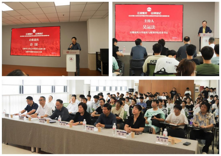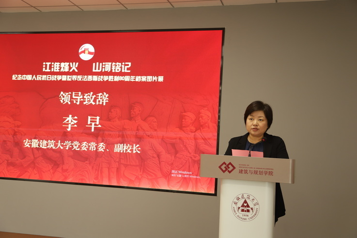 启幕仪式由建筑与规划学院党委书记吴运法主持,流程简洁且富有意义。吴运法介绍了出席仪式的嘉宾与主办、承办单位代表,对各方为展览筹备提供的支持表示感谢。李早走上发言台致辞:“安徽大地曾是抗战重要战场,江淮儿女与新四军同心抗敌、浴血奋战,这段用生命书写的抗战史诗,是民族珍贵的集体记忆;我校始终秉持“进德、弘毅、博学、善建”的校训,在传授专业知识的同时,更着力塑造学生的家国情怀,希望大家都能从这段历史中汲取力量,以青春之姿承先辈之志。”安徽省文学艺术界联合会副主席、安徽省摄影家协会主席许国宣布展览正式启幕。全体参会人员分为两组,有序进入展厅,开启首场集体观展活动。