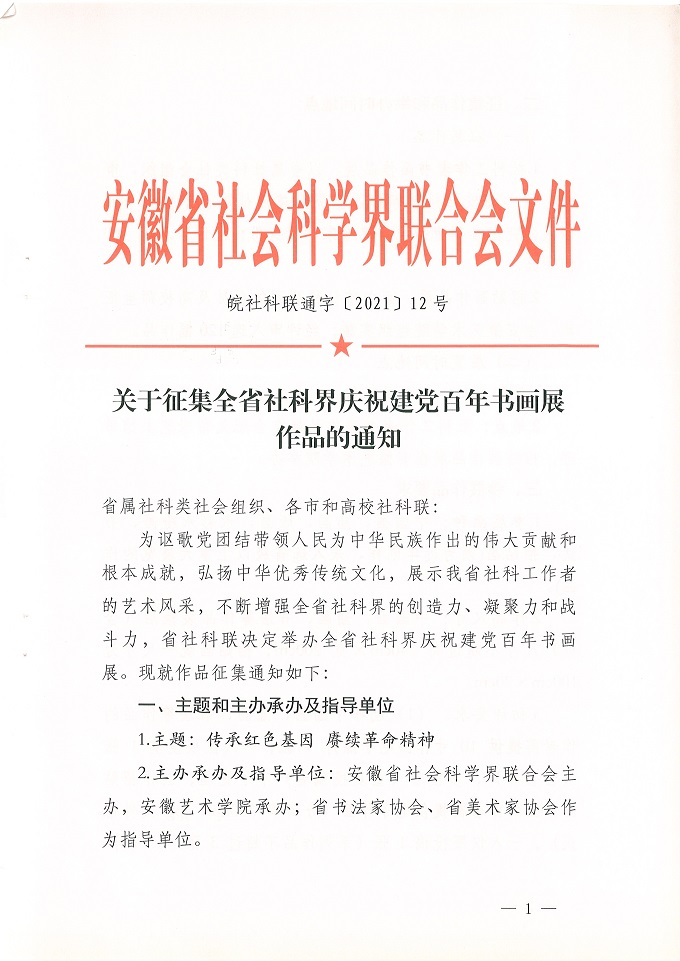 附件:《关于征集全省社科界庆祝建党百年书画展作品的通知》(皖社科联通字〔202112号)