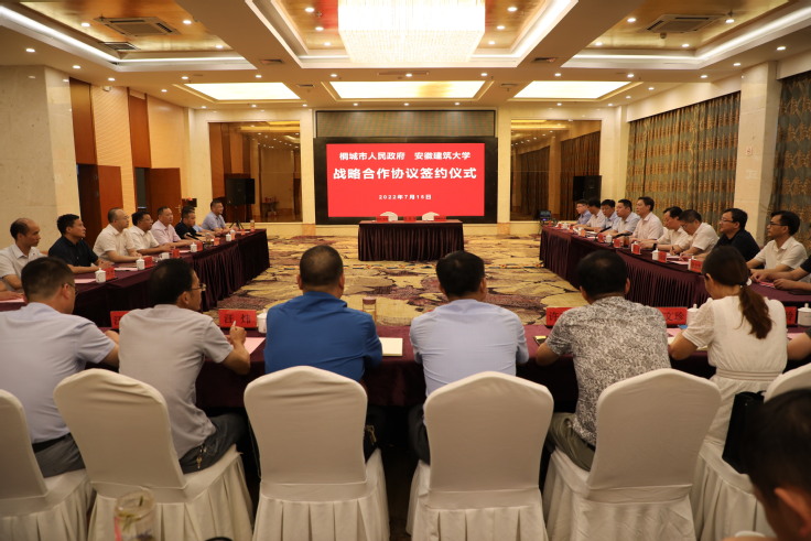 7月15日,校党委副书记、校长黄显怀,校党委常委、副校长蔡新立率队赴桐城市签订战略合作协议。桐城市委书记章周中,市委常委、副市长章友厚,市委常委、组织部长储江,以及学校办公室、科学技术处、科技成果转化中心、建筑与规划学院、土木工程学院、经济与管理学院相关人员参加了签约仪式。