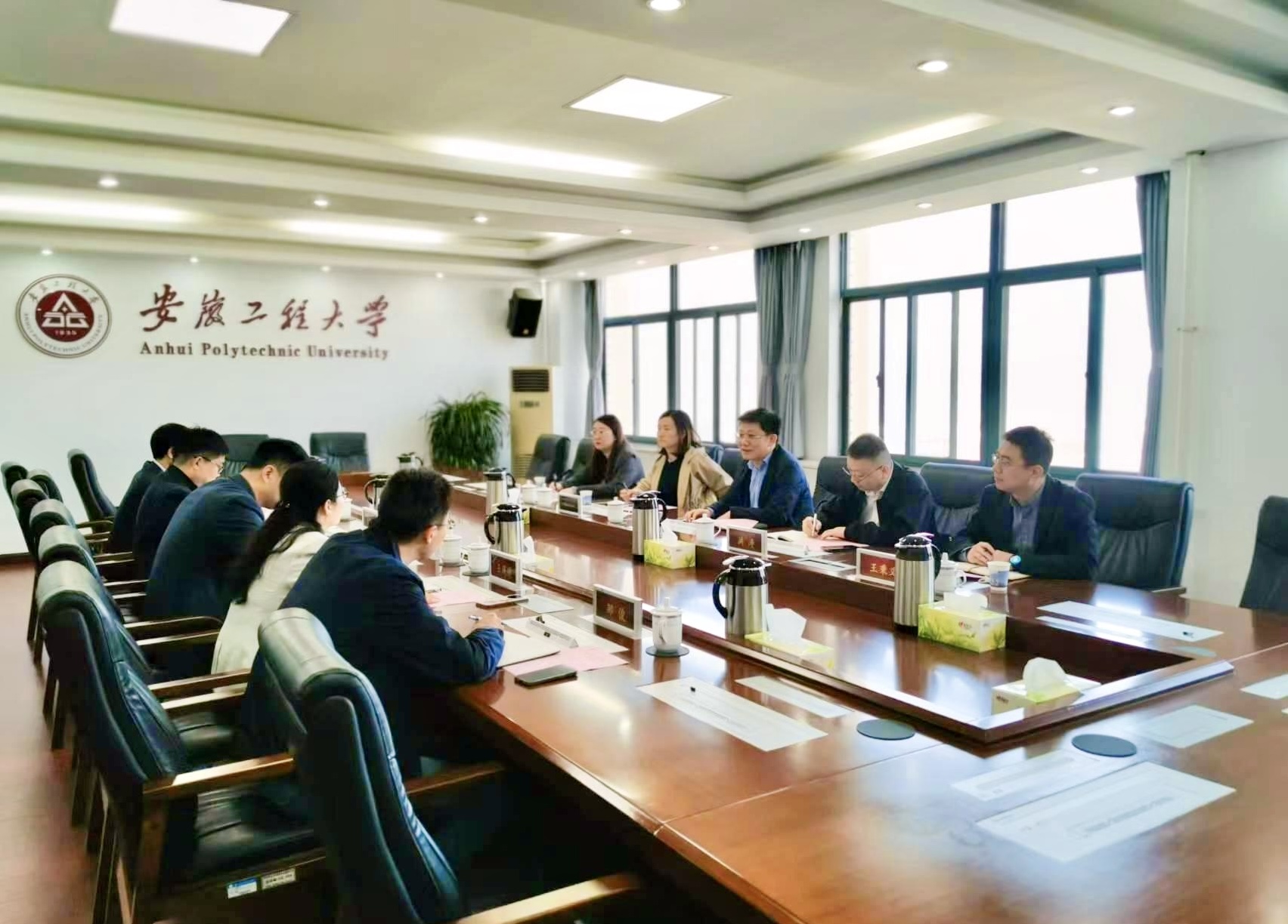 本网讯11月12日,科技处处长雷经发一行5人赴安徽工程大学调研交流。安徽工程大学校党委副书记、校长卢平会见了雷经发一行,校党委常委、副校长凤权出席座谈会并致辞。