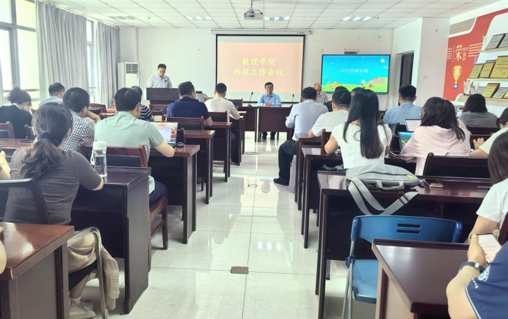 5月14日下午,数理学院在徽风楼1306会议室召开2025年度科技工作会议。学院领导班子成员、具有高级职称或博士学位教师参会,副院长余江应主持会议。会议聚焦科技创新主旋律,通过专题报告、经验分享和学术交流等形式,全面部署新阶段学院科技工作。