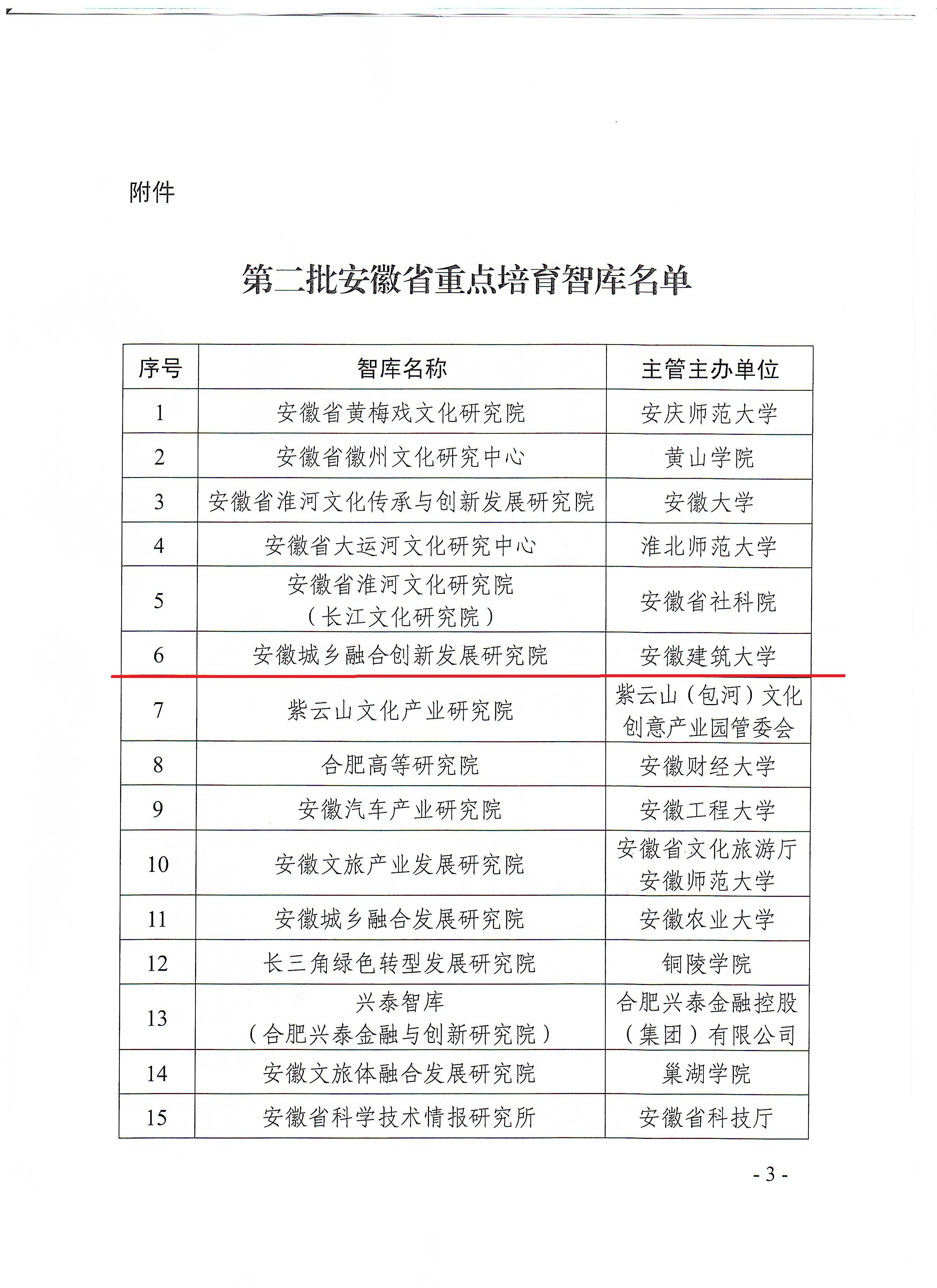 近日,中共安徽省委宣传部公布了2025年第二批安徽省重点培育智库立项名单,我校“安徽城乡融合创新发展研究院”成功获批“安徽省重点培育智库”,实现我校历史上省级重点智库建设的重大突破。