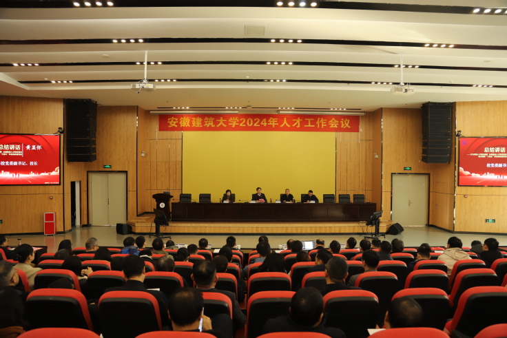 黄显怀作总结讲话。他指出,在2024年元旦刚过,我们就组织召开学校人才工作会议,系统总结2023人才工作成效,全面谋划布置2024年人才建设重点工作,这既是全面贯彻习近平总书记在党的二十大报告中提出的“人才是第一资源”的重要指示精神,也是布置落实省委大力实施人才兴皖工程的重要举措,更是学校建设国内一流、特色鲜明的高水平建筑大学的现实之需。他从“进一步提高政治站位,不断增强做好人才工作的责任感和使命感”“进一步聚焦突出问题,采取切实措施全面加强高层次人才队伍建设”“进一步强化责任落实,构建支撑高质量发展的全周期人才服务体系”三个方面对学校人才队伍建设提出了新要求,从保障学校事业高质量发展的战略高度统筹谋划下一阶段人才工作任务。他呼吁,加快建设新时期人才工程,使命光荣,任务艰巨,时不我待。让我们坚持以习近平新时代中国特色社会主义思想为指导,全面学习贯彻党的二十大精神,聚焦学校“十四五”规划目标任务,大力实施人才强校战略,持续推进人才特区建设,坚定信心、同心同德,埋头苦干、奋勇争先,为全面建设国内一流、特色鲜明高水平建筑大学而团结奋斗!(文/图:郑鹿鸣 蒋芮;审稿:潘和平)