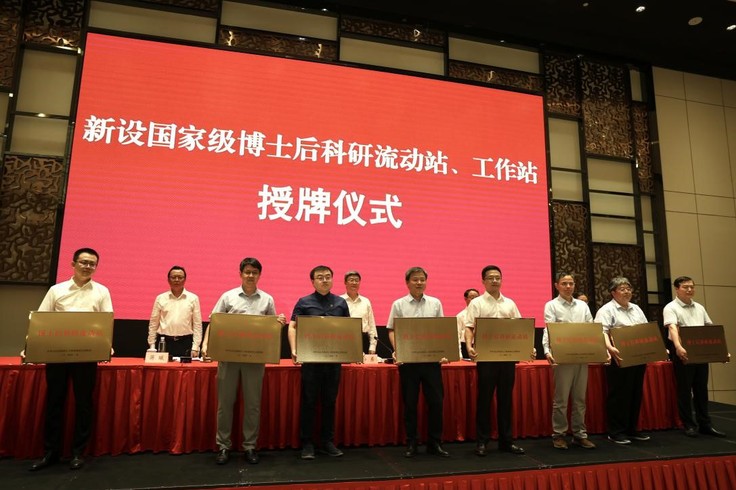 本网讯 6月27日,全省博士后工作推进会在合肥召开,省政府、各市政府、省直相关单位分管负责同志,各市人力资源社会保障局主要负责同志,部分博士后科研流动站、工作站设站单位负责同志,博士后代表等出席会议,副省长孙勇出席会议并讲话。我校党委副书记、校长黄显怀应邀出席会议,并作为2023年新设博士后科研流动站设站单位代表接受授牌。