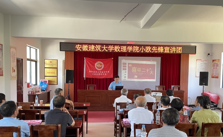 青春由磨砺而出彩,人生因奋斗而升华。在喜迎党的二十大胜利召开之际,8月10日,数理学院“小欧”先锋宣讲团赴舒城县汤池村开展喜迎二十大宣讲活动。先锋宣讲团成员水天柱老师围绕中共一大召开背景、中共一大背后的故事、我们的传家宝——红船精神进行宣讲。激励广大党员要学习和弘扬“红船精神”,赓续共产党人精神血脉,让“红船精神”绽放新的时代光芒。学生党员戚如如、章婷分别介绍了中共一大代表人物,因为相同的信仰,他们走到了中国共产党这个原点,又因为不同的信仰他们从相同的起点走向了不同的归宿。宣讲会后学生党员与汤池村党支部的老党员们进行交流,了解他们的入党故事。