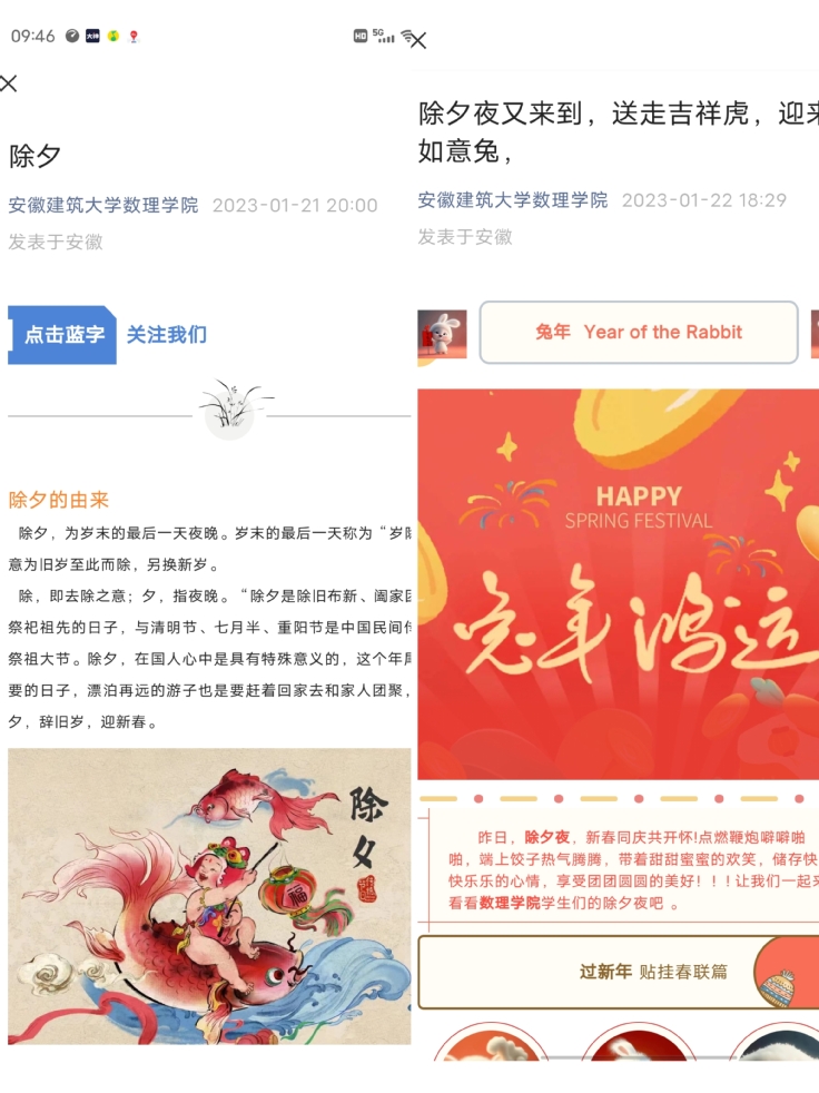 本次活动主要以网络为媒介,引导同学们积极参与活动,分享属于他们当地的年味。不仅能够丰富大家的假期生活,同时也加深了同学们对中华民族传统文化的认知,传递出师生对新年美好生活的期许,愿数理学院师生在新的一年星河长明,兔年新春,万事顺遂!(作者:水天柱;审稿:胡燕青)