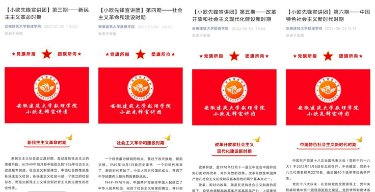 一个国家的发展壮大,不仅需要一代代人接续努力,还需要很多力量来推动,社会主义核心价值观就是其中最持久最深沉的力量。学院坚持用社会主义核心价值观培育人,坚持把社会主义核心价值观融入到大学生学习生活、创新创业和科学研究等各个方面。充分利用开学典礼、重大节日、重大事件纪念日等,开展爱国主义教育和革命传统教育,引导学生弘扬民族精神,增强爱国情怀。支部优秀党员发挥“传帮带”作用,在“数理启航”系列教育实践活动中与低年级学生就专业学习、学术研究、学科竞赛等开展交流,分享实践经验,带领学生团队积极参与课题研究、开展创新创业。疫情期间,学院“小欧”先锋宣讲团凝聚力量,以“青春战‘疫’”为主题,通过学院微信公众号开辟“‘小欧’先锋宣讲团”专栏,分战“疫”中的“志愿红”、生活依然可以青春洋溢两个板块在线上展开宣讲。开展“疫”路成长,从“心”出发防疫日记分享会、在广大学子中产生共鸣。通过这些活动的开展,帮助青年学子们形成正确的世界观人生观价值观,扣好“人生第一粒扣子”。