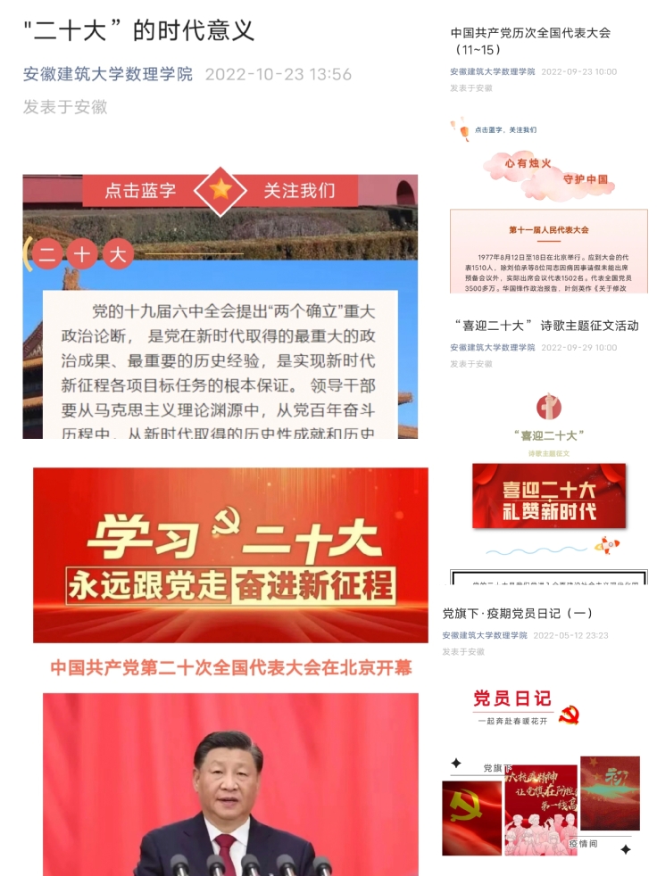 本网讯 2022年,数理学院坚持以习近平新时代中国特色社会主义思想与党的二十大精神为指导,深入学习贯彻习近平总书记关于教育的重要论述,围绕立德树人根本任务,从“理论维度、历史维度、价值维度、实践维度”出发,着力构建大学生思想政治教育体系,培养堪当民族复兴重任的时代新人。