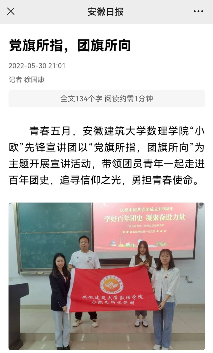 实现中华民族伟大复兴是一场伟大社会革命,绝不是轻轻松松就可以实现的,必须进行具有许多新的历史特点的伟大斗争,必然付出更为艰巨更为艰苦的努力。学院坚持用伟大事业来教育青年学子练就过硬本领,组织学生积极参与课题研究、创新创业、学科竞赛、志愿服务等各类实践锻炼活动。2022年在各类创新创业及学科竞赛中,学院学子在全国大学生数学建模竞赛中获一等奖六项、二等奖七项、三等奖十项,中国研究生数学建模竞赛获二等奖四项、三等奖五项,安徽省大学生物理学术竞赛获三等奖两项,全国大学生市场调查与分析大赛获国家级三等奖四项。学院学子积极开展“我为师生办实事”志愿服务活动,深入课堂开展学风督导工作、选拔辅导员助理深入新生晚自习开展答疑工作、学生党员建立网格化管理点对点帮扶新生。