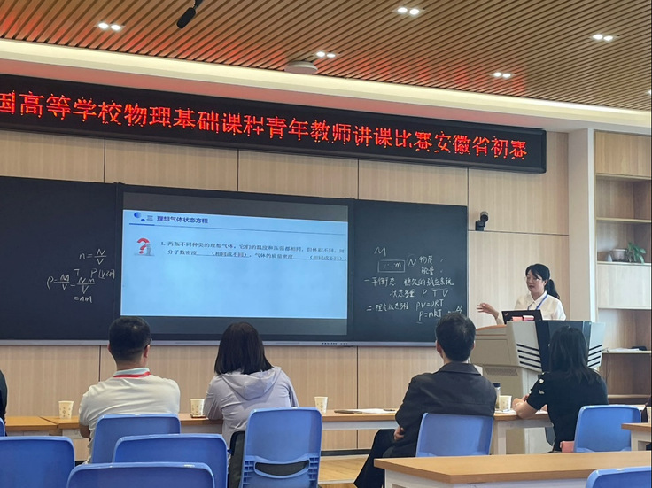 本次比赛由教育部大学物理课程教学指导委员会安徽工作委员会和安徽省物理学会共同举办,合肥师范学院承办,来自中国科学技术大学、合肥工业大学、安徽大学等高校的21名青年教师参加了比赛。我校姚丹老师经过初赛和决赛两轮角逐,获得竞赛一等奖。