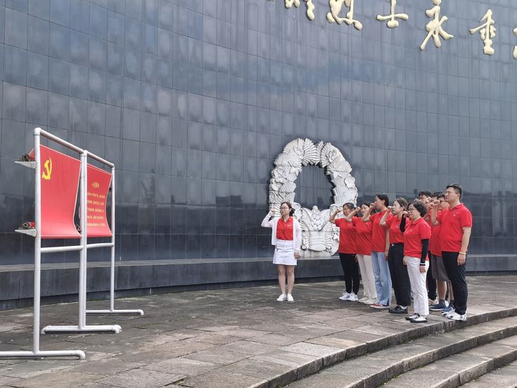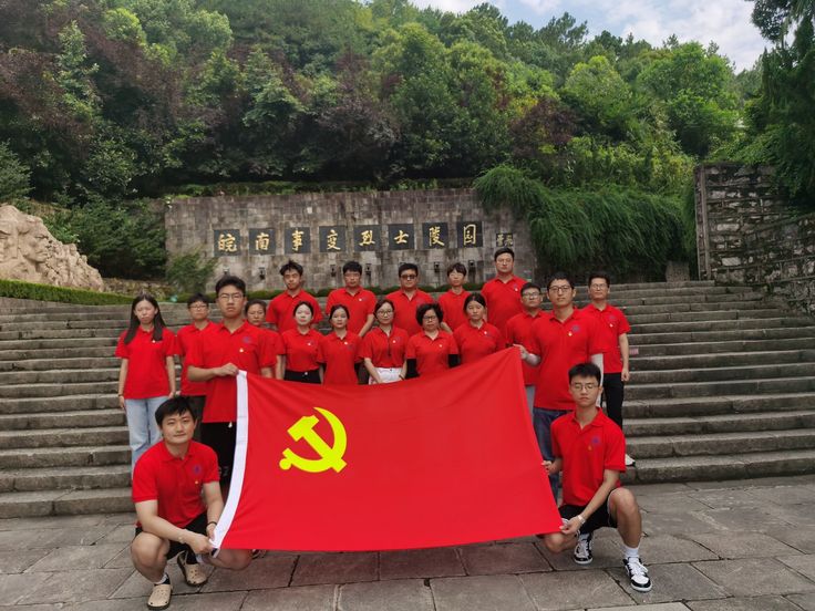 “我志愿加入中国共产党,拥护党的纲领,遵守党的章程,履行党员义务,执行党的决定,严守党的纪律......”在皖南事变烈士陵园纪念广场,实践团师生党员面向党旗,重温入党誓词,回顾初心使命