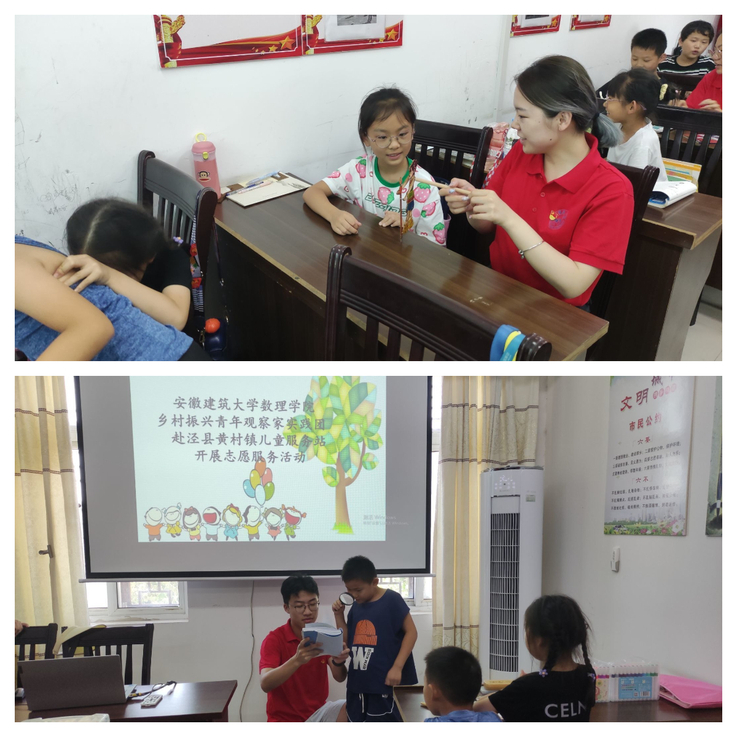 数理学院乡村振兴青年观察家实践团前往黄村镇九峰村儿童托管服务站,20余名托管儿童开展“大朋友与小朋友”关爱活动。刘豪老师为托管儿童上了一堂生动活泼的大气科普课,通过生动活泼的图片和语言,向孩子们介绍了暴雨、雷电等气象灾害对交通的影响,向孩子们科普了气象防灾减灾知识,遇到雷电天气应关闭门窗、远离大树和金属制品等避险注意事项。志愿者与留守儿童亲密互动,“一对一”结对子,开展DIY手工涂色、击鼓传花、诗歌朗诵等活动,与他们亲切交谈,了解他们生活与学习情况,并赠送了书包等学习用品。“今天来参加活动,跟哥哥姐姐们一起画画玩游戏,我真的很开心。”托管儿童在活动结束后激动的说道。实践团成员王京田谈自己的感受时说:“作为一名党员,参加这次社会实践,让我受益匪浅。看到孩子们开心的笑脸,我感受到自己肩上的责任重大,更坚定了自己未来服务基层,将这份爱更好的传递下去的信念和决心”。