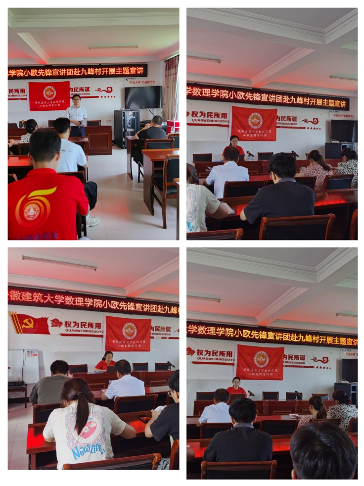 数理学院乡村振兴青年观察家实践团前往泾县黄村镇九峰村的大夫第,感受到了老一辈革命先烈的精神。在胡荣烈士纪念广场前,倾听胡荣烈士献身革命壮烈牺牲的动人事迹。大家依次走近瞻仰烈士纪念碑,缓步绕行,面向革命烈士纪念碑行鞠躬礼,在缅怀中深刻体会革命英烈不畏艰难、奋勇前行的精神。随后,数理学院小欧先锋宣讲团赴学院党建共建单位——泾县黄村镇九峰村开展“缅怀先烈忆初心 赓续血脉担使命”主题宣讲活动。数理学院“小欧”先锋宣讲团成员李晓茹、王欣芮、王京田分别围绕“皖南事变”中英勇牺牲的新四军副军长项英、副参谋长周子昆、政治部主任袁国平三位烈士的英勇事迹开展宣讲,带领党员同志们深入学习领会新四军铁军精神—“铁的信仰 铁的担当 铁的意志 铁的纪律”。