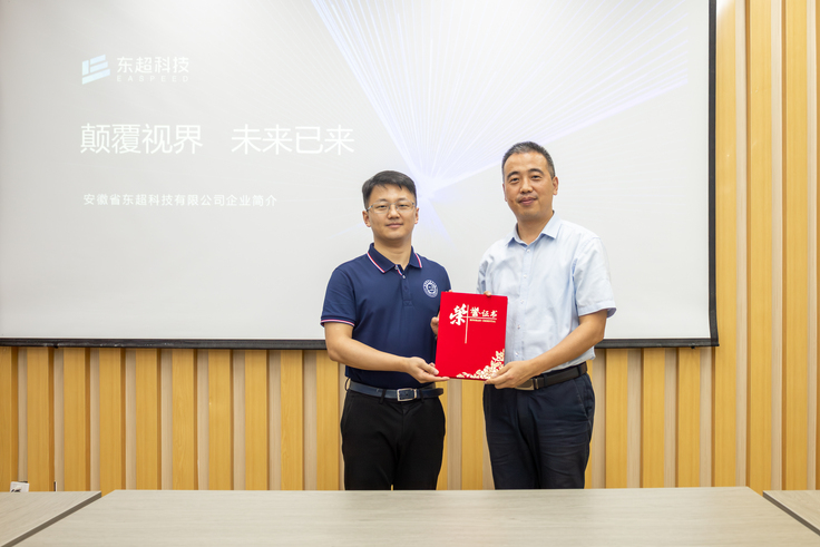 本网讯 为进一步加强校企交流与合作,促进毕业生高质量就业,8月14日,校党委常委、副校长闵杰带队赴东超科技有限公司开展“访企拓岗促就业”专项行动,安徽省东超科技有限公司董事长、总经理韩东成、副总经理朱永志以及学校数理学院、科技处有关人员参加交流座谈。