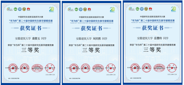 竞赛期间,参赛选手不畏辛苦、日夜奋战、团结合作、发挥出色,最终为学校赢得了荣誉,同时也提升了科研创新实践能力。经过四天三夜的连续奋战,我校参赛队伍表现不俗。其中,由数理学院刘家保教授指导的袁惜玉、汪旭、磊团队,刘贝然、李启昌、余梦媛团,以及欧剑老师指导的岳慧玲、杨晴、邓欣然团队均在本次竞赛中荣获全国三等奖。