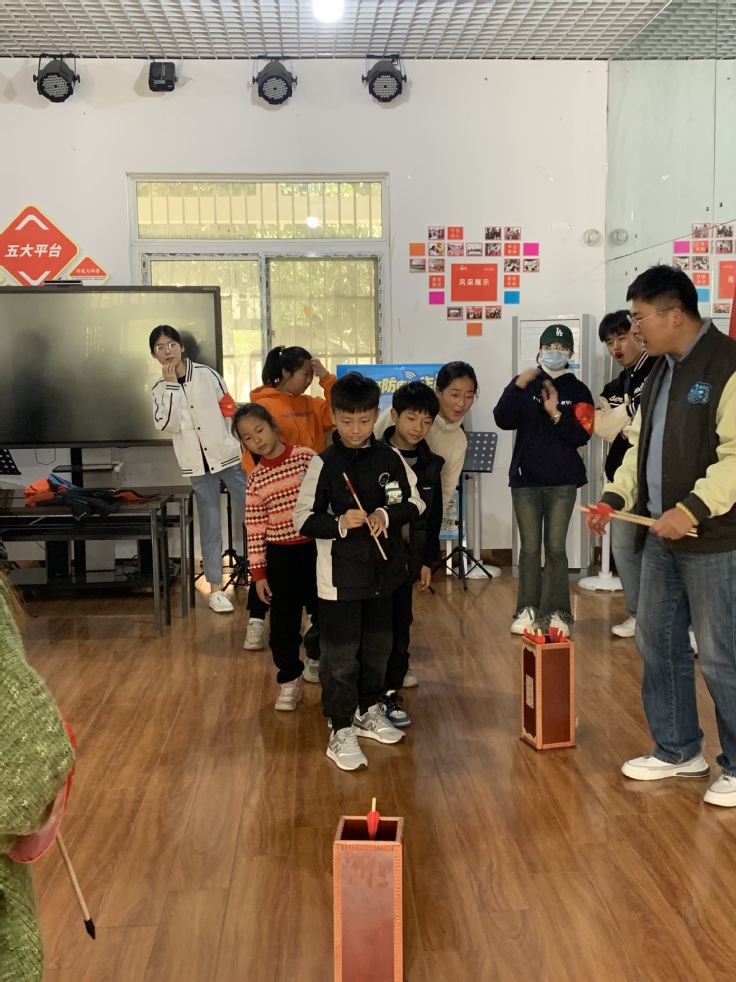 活动现场,学院小欧先锋宣讲团成员王京田给小朋友分享了《雷锋的故事》,鼓励小朋友们要向雷锋叔叔学习,从身边的小事做起,主动帮助别人。志愿者们精心准备了投壶、套圈、萝卜蹲等一系列趣味互动游戏,孩子们在轻松愉快的氛围中,学会了合作与分享,同时志愿者们还为社区的小朋友们提供了课后辅导服务,耐心的解答孩子们在学习中遇到的问题,引导孩子们养成良好的学习习惯和自主思考的能力。