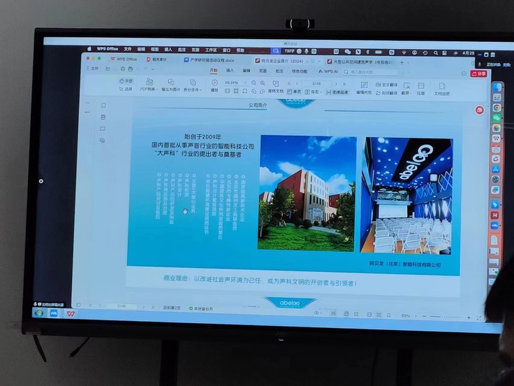 阿贝龙(北京)智能科技有限公司董事长张升锋介绍了企业的基本情况,并针对企业的产品领域及企业未来发展战略目标进行了详细描述,人力资源总监刘杨结合企业实际的岗位设置和技术需求,对学院的人才培养给出具体建议,并表示学院声学专业同企业岗位需求契合度比较高,企业为实习生提供实习岗位和实践机会,共同开拓校企合作互惠共赢的局面。