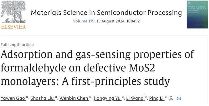 本网讯 近日,我校数理学院声学专业2021级本科生高娅雯以第一作者在国际学术期刊Materials Science in Semiconductor Processing(IF=4.1,JCR二区,中科院三区)发表题为“Adsorption and gas-sensing properties of formaldehyde on defective MoS2 monolayers: A first-principles study”的研究论文。数理学院李平副教授是论文的通讯作者,欧美黑人巨大videos精品_欧美黑人巨大xxxxx_欧美黑人乱大交_欧美黑人乱大交_欧美黑人牲交videossexeso_欧美黑人添添高潮a片www_欧美黑人添添高潮a片www_欧美黑人性暴力猛交喷水黑人巨大是论文的唯一完成单位。