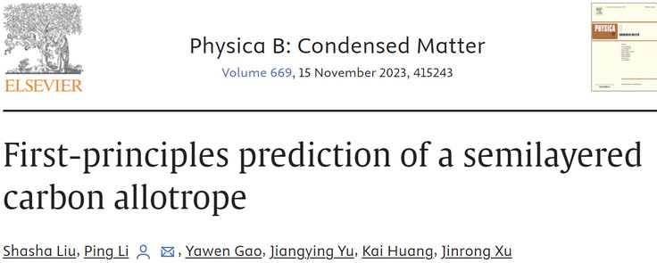 本文是高娅雯在李平老师指导下发表的第二篇学术论文。此前,高娅雯作为第三作者在Physica B(IF=2.8)发表研究论文“First-principles prediction of a semilayered carbon allotrope”,预测了一种新型半层状碳结构。