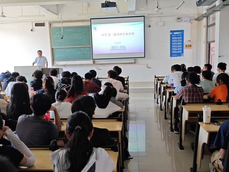 活动开始,各专业负责人对2024级新生到数理学院求学表示热烈欢迎和衷心祝贺。他们分别从学科建设、师资力量、就业前景、学科竞赛等方面做了详细介绍,“统计学专业的学习最重要的是学好数学这门基础性课程,要锻炼自己的分析能力,多多参加数学建模和社会市场调查相关学科竞赛”统计学专业谭莹莹老师说。“声学专业作为当前热门专业,就业前景广阔,作为大一新生首要的是将声学专业基础课程学好同时要不断提高自主学习能力,脚踏实地、扎扎实实做学术”声学专业张学勇老师说。“应用物理学专业较其他专业难度大,需要同学们勤思考、多动手同时也要多多参与体育锻炼,以强健的体魄投入到学习生活中去”应用物理学专业李平老师说。“数据计算及应用专业作为新专业是由数学、统计学和计算机科学与技术等一级学科交叉融合设置的理学门类数学类专业。要求各位同学加强数学计算能力、智能计算以及应用程序设计能力的培养”数据计算及应用专业谢新平老师说。随后学业导师分小组和同学们进行沟通交流,针对新生提出的专业学习、课程选课等问题进行逐一解答。