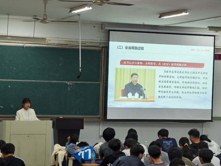 本次团校培训班首先由数理学院吴钰濛老师进行新时期共青团工作讲解及习近平考察安徽重要讲话精神学习。之后校团委岳琦老师为大家带来“青春跟党走,建功新时代”的主题学习。之后又由甄玉婷为大家讲述党的二十届三中全会精神,让各位团员对于中国特色社会主义道路有了更深刻的理解。最后,由何慧婷为大家讲述在乡村振兴事业中,广大青年的有力作为。