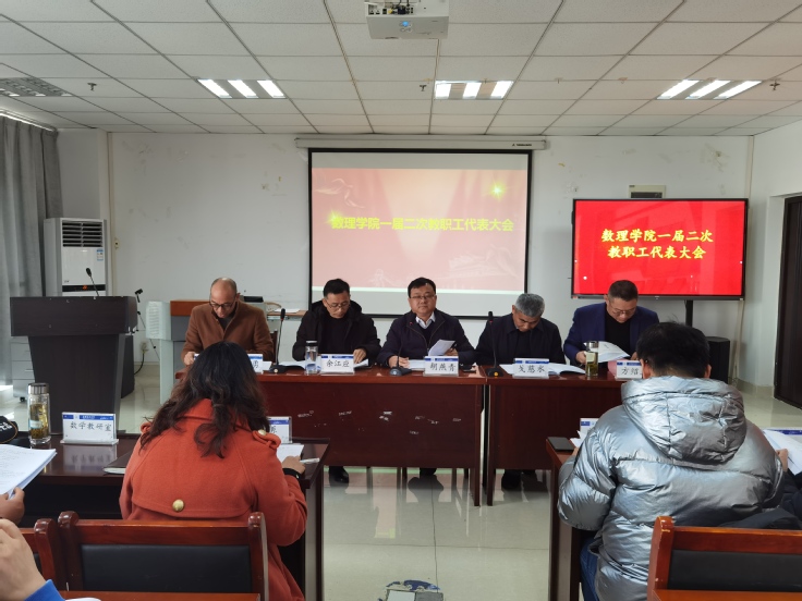 学院分工会主席方绍正向预备会报告了本次教代会筹备情况。预备会通过了大会的会议议程等事项。数理学院一届二次教职工代表大会在庄严的国歌声中拉开帷幕。本次数理学院教代会首先由院长戈慈水做题为《守正创新,集智聚力,全力推进学院高质量内涵发展》的学院2024年工作报告。戈慈水全面回顾了学院在教学、科研、学科建设等各个方面取得成绩。学院党委副书记、纪委书记方绍正作数理学院分工会工作报告,汇报了数理学院分工会中思想引领、活动开展、教职工权益等方面取得的成绩。戈慈水代表学院作年度财务报告。数理学院副院长余江应副院长汇报了《数理学院2024 年度绩效分配细则》。