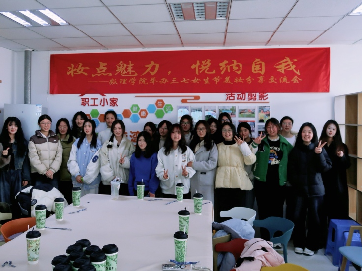 本网讯 为庆祝三七女生节,丰富校园文化生活,帮助广大女生提升自我形象与审美能力,3月7日数理学院在1206教工小家组织了一场别开生面的美妆分享交流会。本次活动共有五十余名女生积极参与。