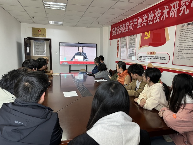 本网讯 3月18日,数理学院组织师生于徽风楼1304会议室集中收看学习贯彻2025年全国两会精神的专题宣讲直播报告会。此次宣讲专家为十四届全国人大代表、中共安徽省委讲师团理论宣讲专家、中共安徽省委党校(安徽行政学院)党的建设教研室主任吴梅芳。学院党委理论学习中心组成员、支部书记、党员干部、师生代表参加。
