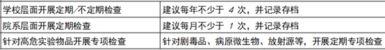 在《高等学校实验室安全检查项目表(2020)》中,对于学校自查提出了明确要求: